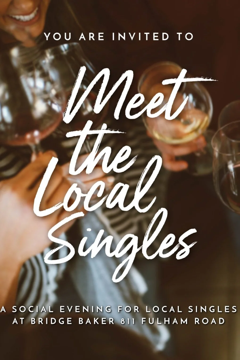 “Meet the Local Singles” evenings, a new series of social sessions, take place at Bridge Baker’s 811 Fulham Road Bakery and Pizzeria. The evenings are small informal gatherings of approximately 20 singles, with the emphasis on a relaxed, easy environment for single locals to chat, make new connections and enjoy a midweek night out over a drink and some pizza. Find out more / book tickets here https://bridgebaker.co.uk/events/