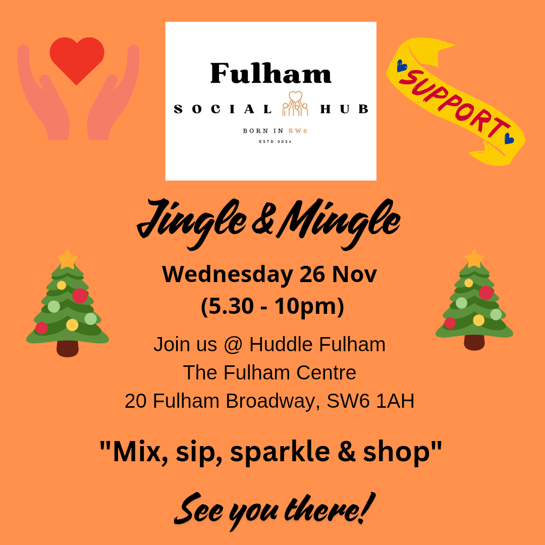 Everyone’s welcome at Fulham Social Hub’s “Jingle Mingle” event. Mix, sip and shop at Huddle Fulham, The Fulham Centre, 20 Fulham Broadway. Connect with residents, network & shop from local businesses: Pearls of the Orient, Bridge Baker, Crystal Garden & more. Kick off silly season together with great conversations, meet other like-minded SW6 individuals: residents, local business owners, community organisations and brands. Perhaps discover something new and find ways to collaborate and connect. Tickets £5 book here https://www.eventbrite.co.uk/e/fulham-social-hub-jingle-mingle-tickets-1867283367819?aff=oddtdtcreator
